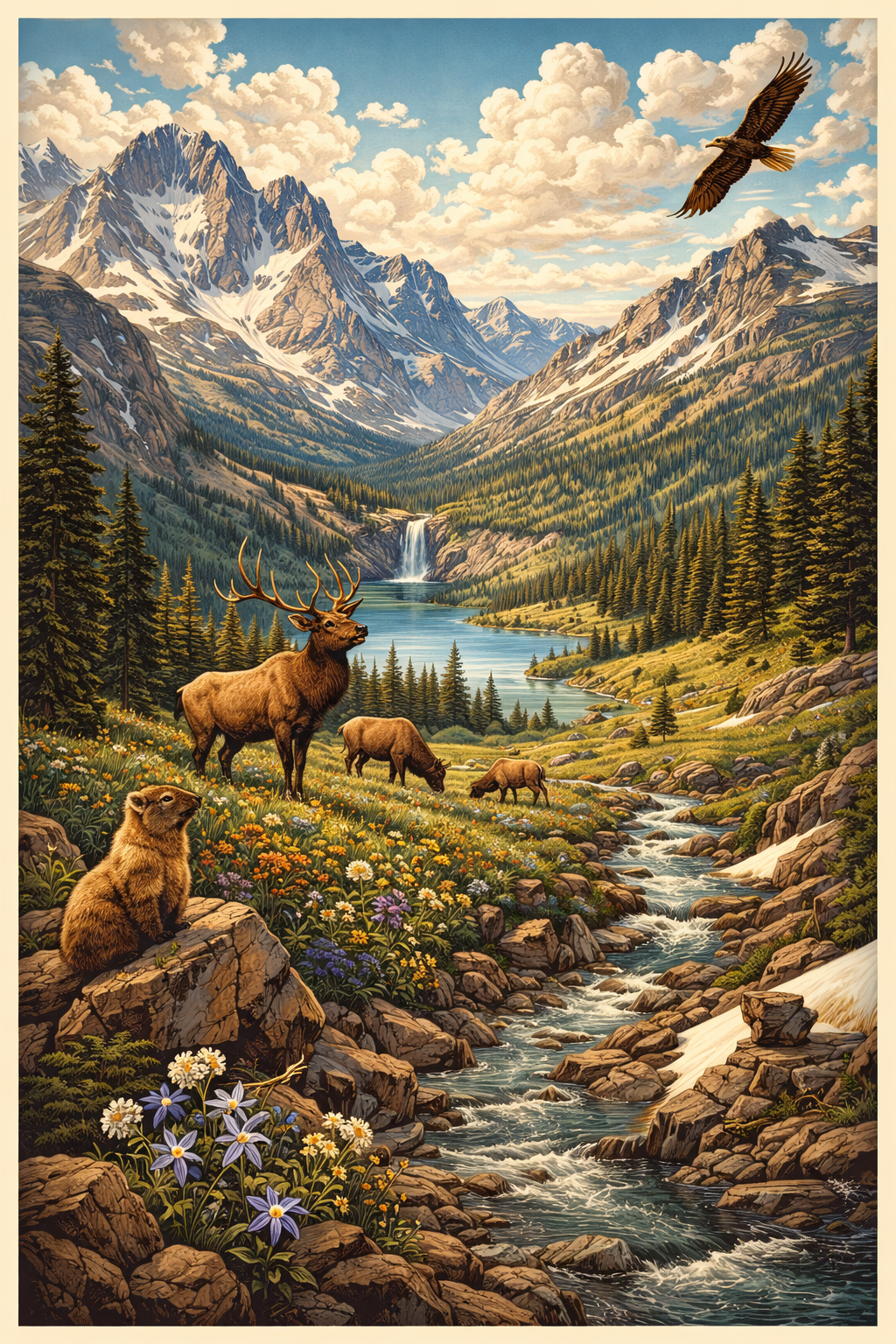 - Mule deer and bighorn sheep in valleys and alpine ridges.